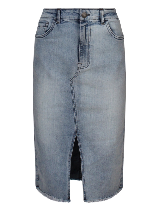Deze mooie denimrok van ons eigen merk Lizzy Lou heeft een mooie split aan de voorkant en onder een rafelafwerking. Deze rok is er in 2 wassingen. Welke is jouw nieuwe favoriet?