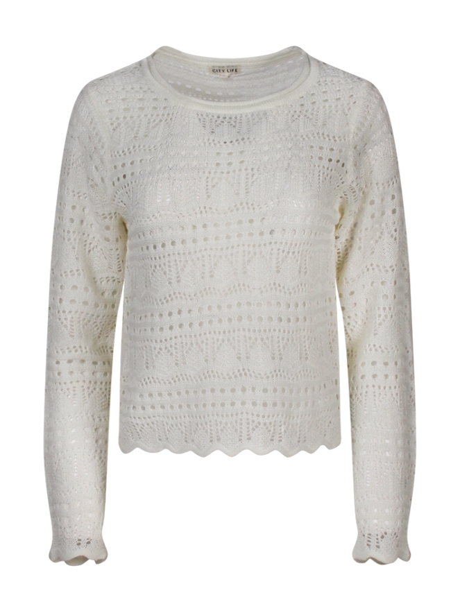 Zomerse trui met open ajourbreisel. Met sierlijk patroon. Leuk te combineren met jeans, draag hem over je bikini of wat minder opzichtig en niet doorzichtig te combineren met een hemdje eronder.