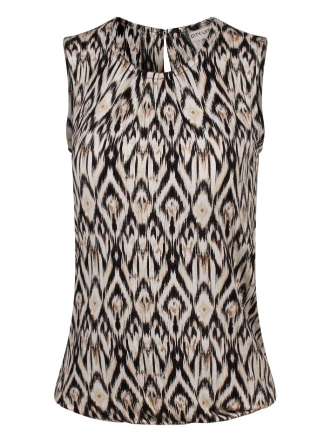Deze singlets dragen heerlijk door de flexibele T-shirt stof. Op de rug zit een druppeluitsparen welke sluit met een kleine haaksluiting. Met kleurrijke ikatprint welke voor een casual sporty look perfect te combineren is met witte sneakers en een vlotte driekwart broek.