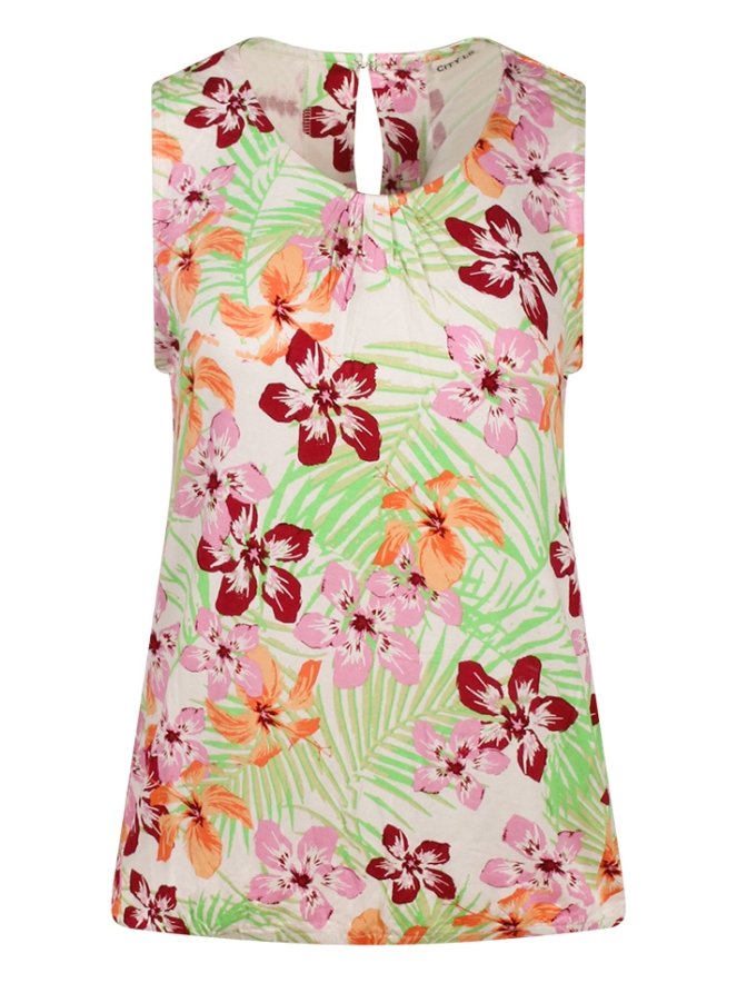 Dit singlet is gemaakt van een soepel vallende stof en heeft een zomerse bloemenprint. De halslijn is sierlijk geplooid voor een vrouwelijke touch. Aan de achterkant zit een handige haak-oogsluiting, zodat je het singlet gemakkelijk aan en uit kunt trekken. Een luchtig en stijlvol item voor warme dagen!