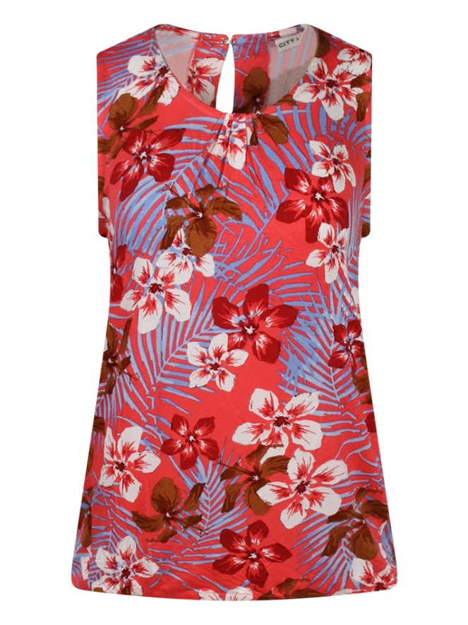 Dit singlet is gemaakt van een soepel vallende stof en heeft een zomerse bloemenprint. De halslijn is sierlijk geplooid voor een vrouwelijke touch. Aan de achterkant zit een handige haak-oogsluiting, zodat je het singlet gemakkelijk aan en uit kunt trekken. Een luchtig en stijlvol item voor warme dagen!