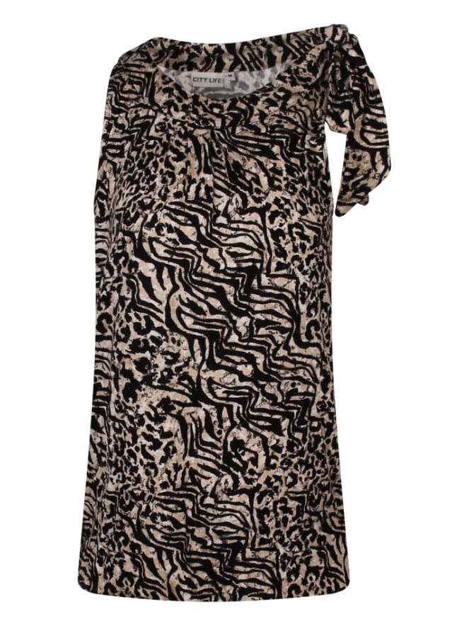 Let the sun shine! Deze mooie singlet is net even wat anders dan dat je in de kast hebt hangen! De zelf te knopen strik op de schouder maakt deze top een echte blikvanger!