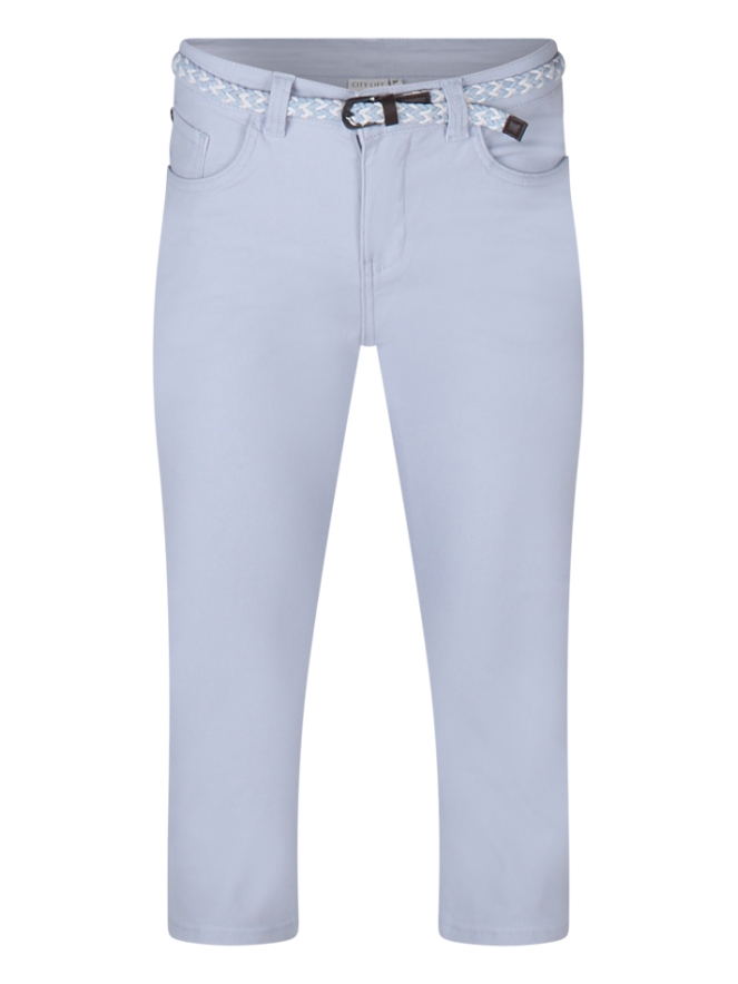 Deze driekwart broek van Citylife is de perfecte combinatie van comfort en stijl voor zomerse dagen. Gemaakt van een zachte katoenmix met stretch, biedt de broek een fijne pasvorm en optimale bewegingsvrijheid. De effen twill stof wordt speels afgewerkt met een gevlochten ceintuurtje voor een subtiel accent. Dankzij de 5-pocket styling, regular waist en praktische lengte is deze broek niet alleen modieus, maar ook ideaal voor op de fiets of een actieve dag buiten.