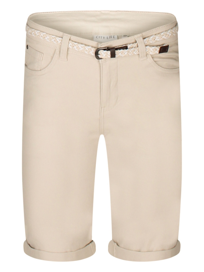 Deze korte broek van Citylife is een veelzijdige en comfortabele must-have voor de zomer. Vervaardigd uit een zachte katoenmix met stretch, zorgt de short voor een fijne pasvorm en veel bewegingsvrijheid. De effen twill stof krijgt een stijlvolle touch door het gevlochten ceintuurtje, terwijl de 5-pocket styling en regular waist zorgen voor een tijdloze look. Ideaal voor warme dagen en perfect te combineren met jouw favoriete zomertops.
