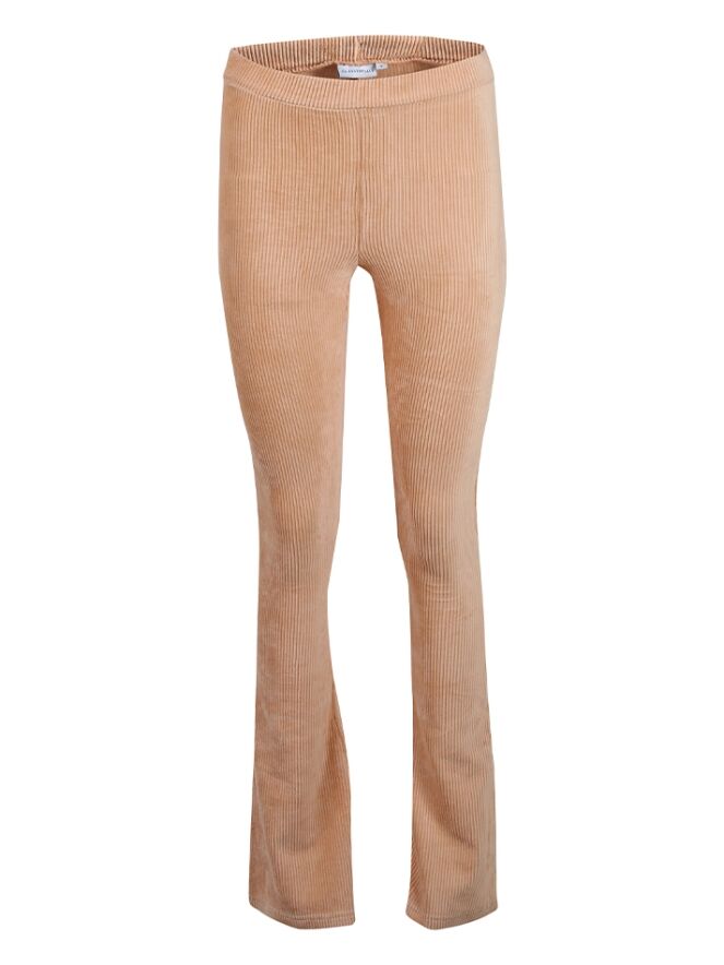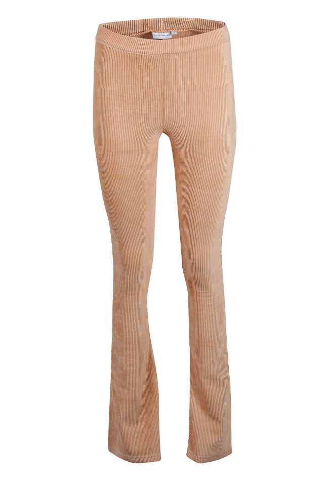 Velvet rib pantalon van CL Essentials. De broek is van zachte velvet ribstof en heeft een flare pijp. De broek heeft een elastieken taille. Valt op maat. Materiaal: 56% katoen, 43% polyester, 1% elasthan. Wassen op 30 graden, niet bleken, niet in de droger, kan gestreken worden.