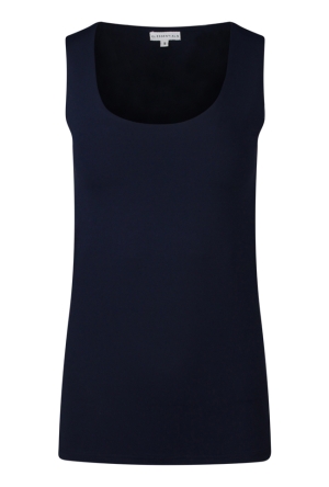 Singlet van CL Essentials. Dit hemd heeft een ronde hals en is het bovenste deel zowel voor als achter dubbel pandig. Gemaakt van een fijne rib stof.