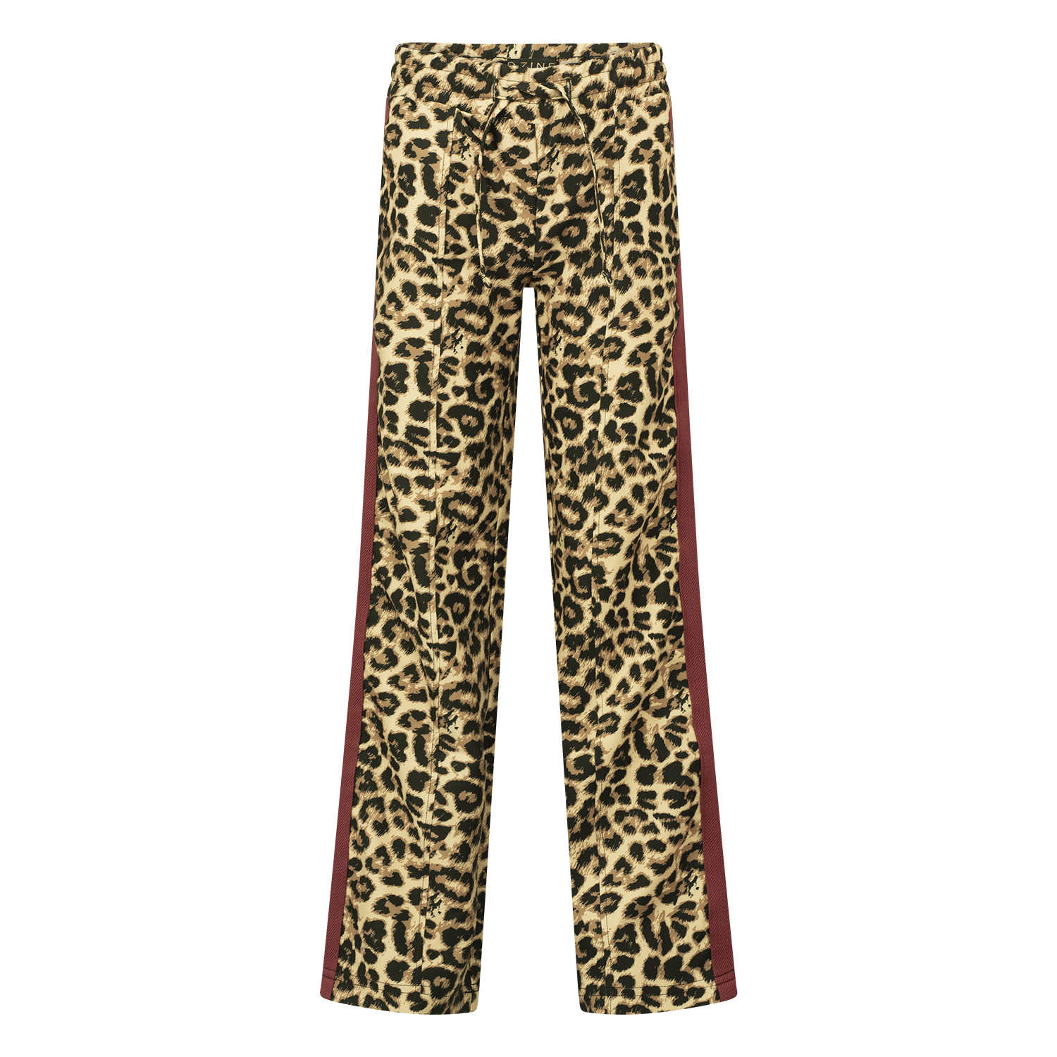 Sportieve panter pantalon met trendy bordeaux streep aan de zijkant van het been. Ook heeft deze comfortabele broek fijne steekzakken, een opnaadje voor over het been en een elastische tailleband zodat hij aanvoelt als een joggingbroek. Deze trek je niet meer uit!