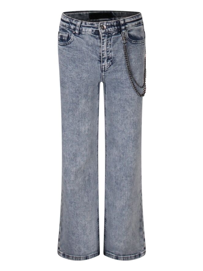 Deze trendy 5-pocket jeans met wijde pijpen is echt een musthave voor meiden! Het denim model zit lekker en ziet er superhip uit. Dankzij de wijde pijpen krijgt de jeans een stoere en moderne look. Combineer 'm met een toffe sweater of een leuke top met gilet en jouw outfit is helemaal on point!