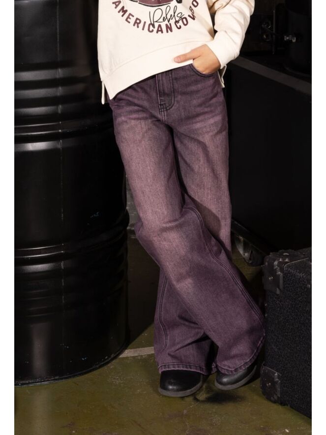 Deze trendy 5-pocket jeans met wijde pijpen is echt een musthave voor meiden! Het denim model zit lekker en ziet er superhip uit. Dankzij de wijde pijpen krijgt de jeans een stoere en moderne look. Combineer 'm met een toffe sweater of een leuke top met gilet en jouw outfit is helemaal on point!