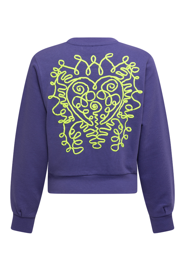 Zoek je een meisjes sweater met een verrassend detail op de rug?