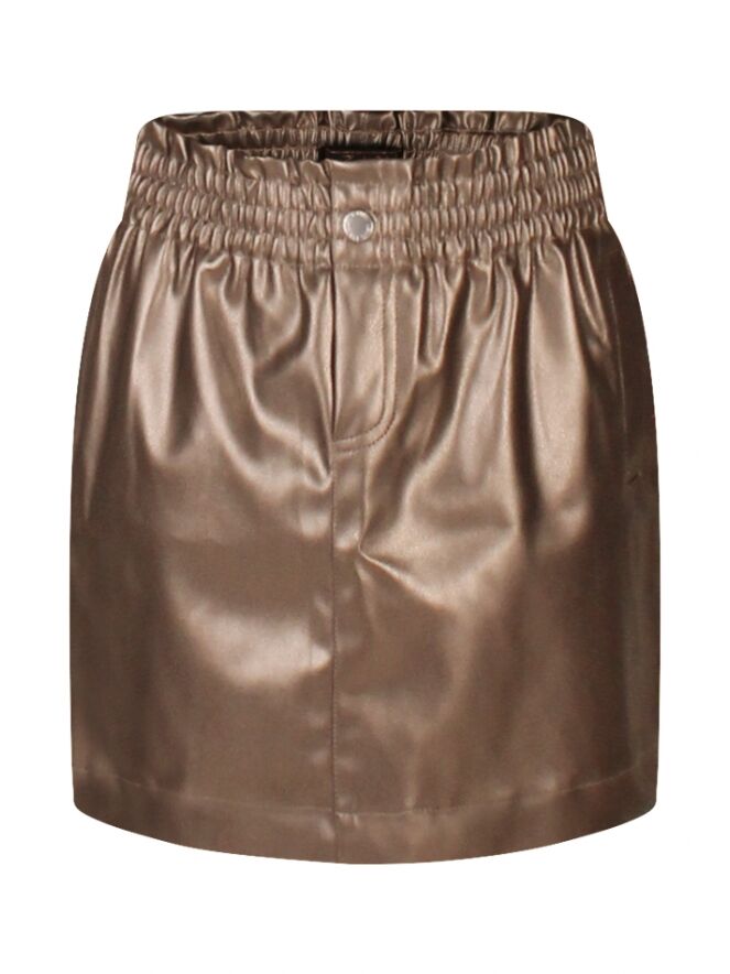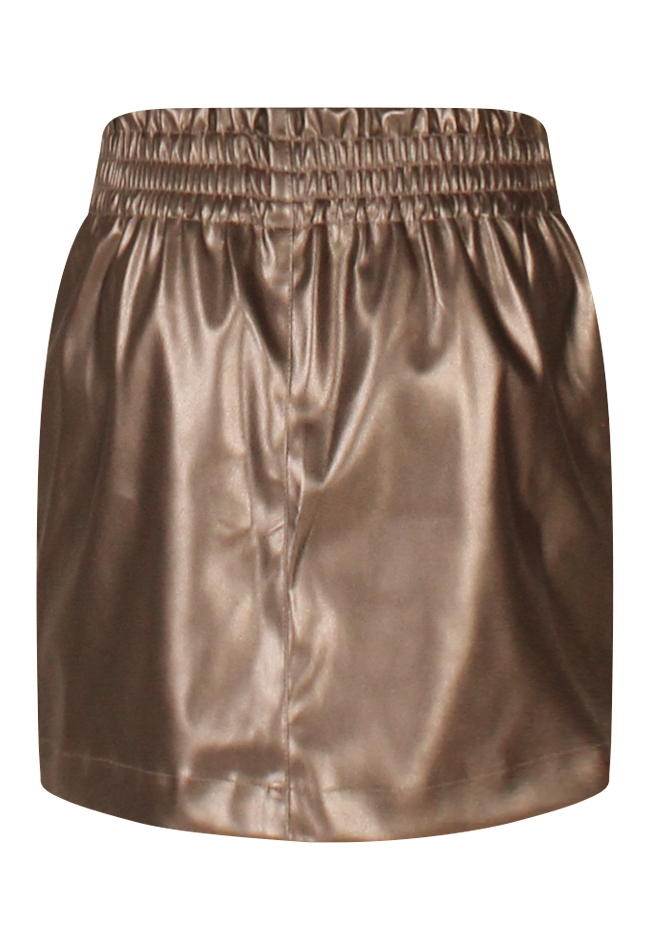 Stoer ée girly tegelijk! Dit metallic rokje van zachte faux leather is een echte eyecatcher. Dankzij de elastische band zit de rok ook nog eens superlekker. Combineer hem met een maillot en laarsjes voor een feestelijke look, of draag de rok casual met sneakers.