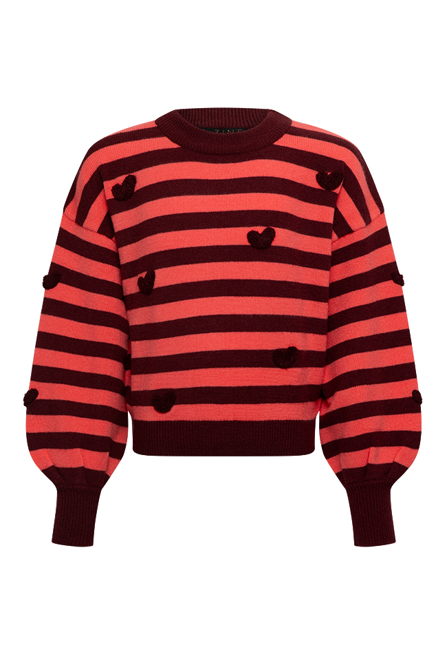 Warme trui voor je meisje? Dat is deze gebreide trui combineert een klassiek streepmotief met lieve hartjes van teddy stof voor een speelse en tijdloze look. Perfect voor de koudere dagen, gemaakt van zacht materiaal dat heerlijk draagt. Draag ?m met een jeans of een rok voor een schattige en comfortabele outfit.