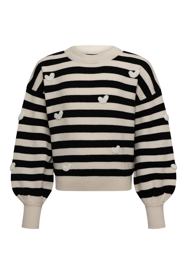 Warme trui voor je meisje? Dat is deze gebreide trui combineert een klassiek streepmotief met lieve hartjes van teddy stof voor een speelse en tijdloze look. Perfect voor de koudere dagen, gemaakt van zacht materiaal dat heerlijk draagt. Draag ?m met een jeans of een rok voor een schattige en comfortabele outfit.