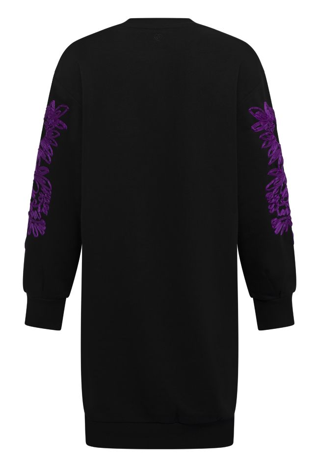 Heerlijke sweater jurk, super zacht en erg comfortabel. Legging eronder met een leuk laarsje en klaar is je outfit! Deze sweaterdress heeft een mooi sierlijk opgestikt lint op de mouw.