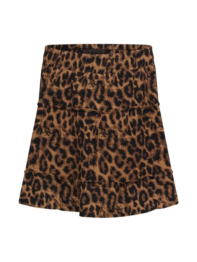 Trendy meisjes rok van D-zine, uitgevoerd in een soepele polyester/elastaan crêpe kwaliteit. De rok heeft een strokenmodel dat zorgt voor een zwierig effect en een elastische tailleband waardoor hij comfortabel draagt. Verkrijgbaar in drie varianten: panterprint, zebraprint en bloemenprint. Perfect te combineren met een eenvoudige top met gilet of met een bijpassend item uit de collectie.