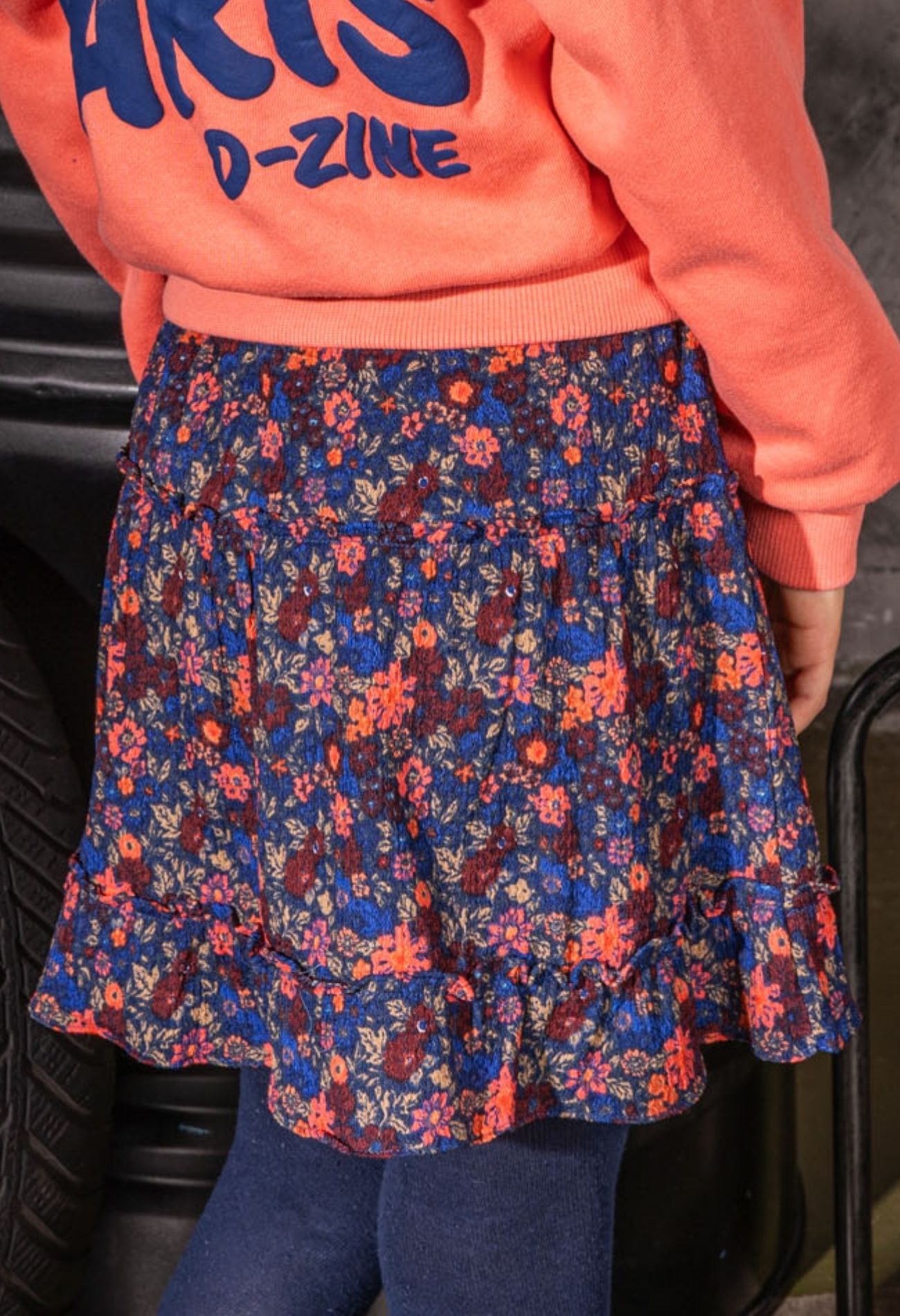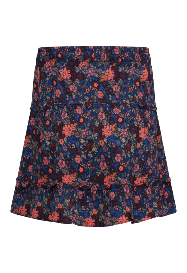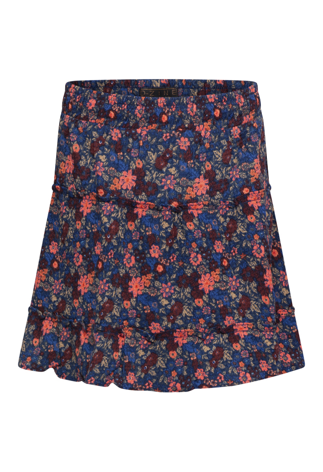 Trendy meisjes rok van D-zine, uitgevoerd in een soepele polyester/elastaan crêpe kwaliteit. De rok heeft een strokenmodel dat zorgt voor een zwierig effect en een elastische tailleband waardoor hij comfortabel draagt. Verkrijgbaar in drie varianten: panterprint, zebraprint en bloemenprint. Perfect te combineren met een eenvoudige top met gilet of met een bijpassend item uit de collectie.