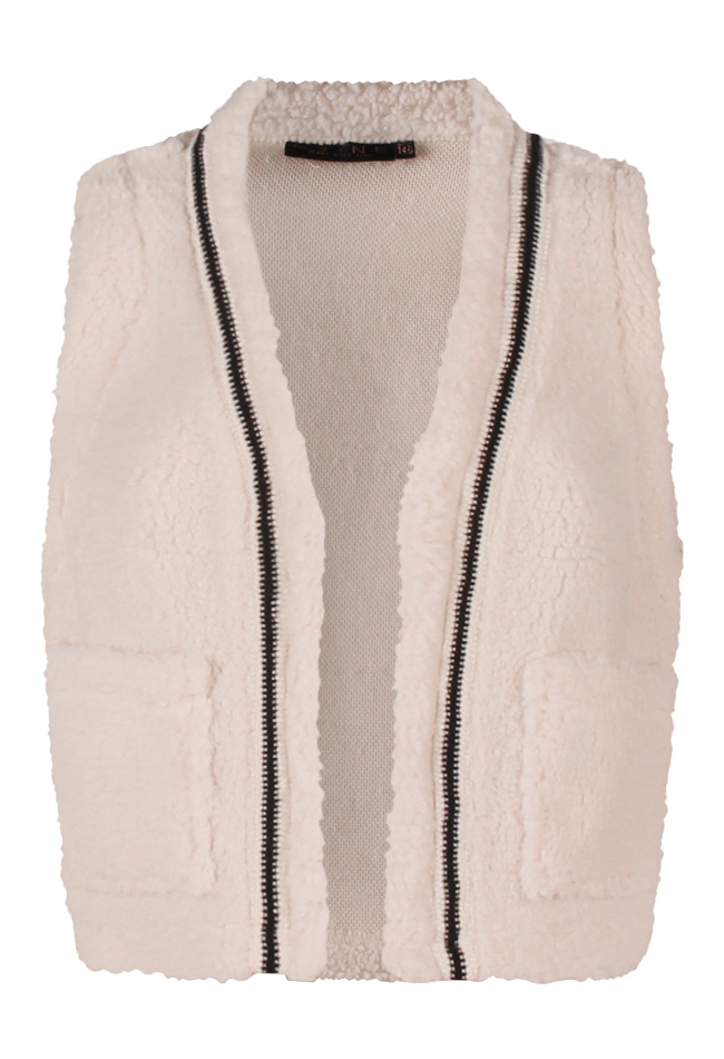 Dit teddy gilet is echt te leuk! De fluffy stof voelt heerlijk zacht aan en geeft elke outfit meteen een cozy touch. De fancy tape details zorgen voor een trendy twist, en de zakjes aan de voorkant maken hem extra handig. Perfect om over een jurkje of longsleeve te dragen, dit gilet maakt elke look af!