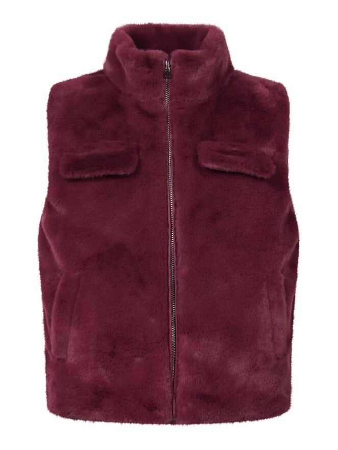 Superzachte meisjes fake fur bodywarmer van D-zine. Deze bodywarmer is uitgevoerd in heerlijk zachte imitatiebont met een gladde satijnen voering voor extra comfort. Het model heeft een opstaande kraag, is mouwloos en sluit met een rits aan de voorzijde. Voorzien van fake borst klepzakken voor een stoere uitstraling. Perfect te combineren met feestelijke en casual outfits.
