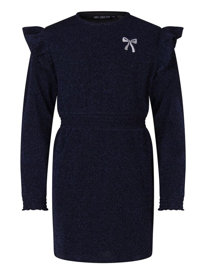Deze meisjesjurk heeft een subtiele glans door de metallic draad in de stof. De ruches en het strikborduursel geven de jurk een lieve, feestelijke uitstraling. Dankzij het smockdetail sluit hij mooi aan en zit hij comfortabel. Perfect voor een speciale gelegenheid of een dag waarop ze extra wil stralen.
