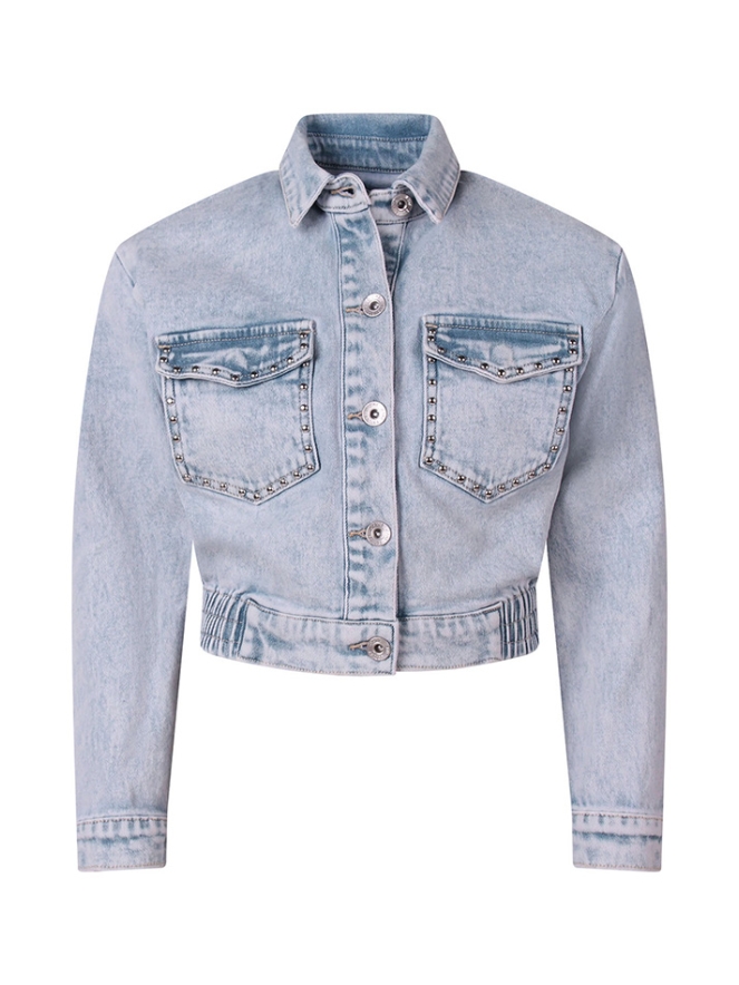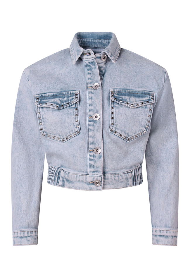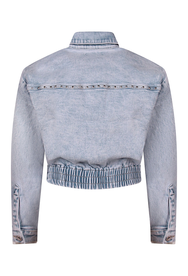 Denim is weer helemaal hot! En dit stoere spijkerjack laat je stralen! Met een mooie bleached wassing in grijs of blauw is dit jack speciaal voor jou! Hou je van een mooi denim pak? Kijk dan ook eens naar de bijpassende jeans met dezelfde studs met artikel nr. Z10056.