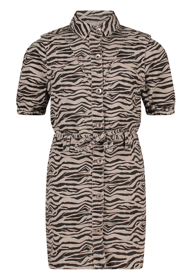 Stoer denim jurkje voor meisjes met een trendy zebradessin. De pofmouwtjes geven een speelse en modieuze touch, terwijl het ceintuur zorgt voor een mooie pasvorm. Perfect voor zowel school als een dagje uit. Draag â??m met sneakers voor een stoere look of met laarsjes voor net iets meer stijl. Trendy, comfortabel en helemaal on-trend! ð??¤