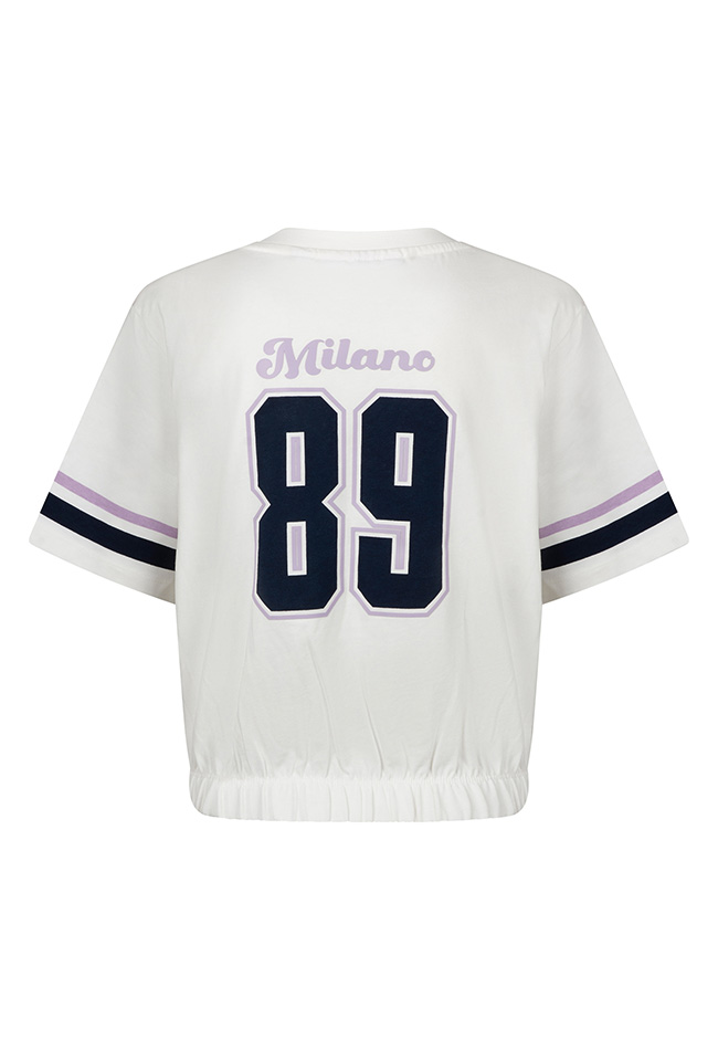 Dit T-shirt van D-Zine valt aan de bovenkant wat boxy en heeft een elastiek in de taille waardoor hij onder aansluit in de middel en iets cropped wordt. Een baseball shirt geeft je een trendy maar ook sporty look! Laat zich erg goed combineren op een mooie spijkerbroek, lang of kort.