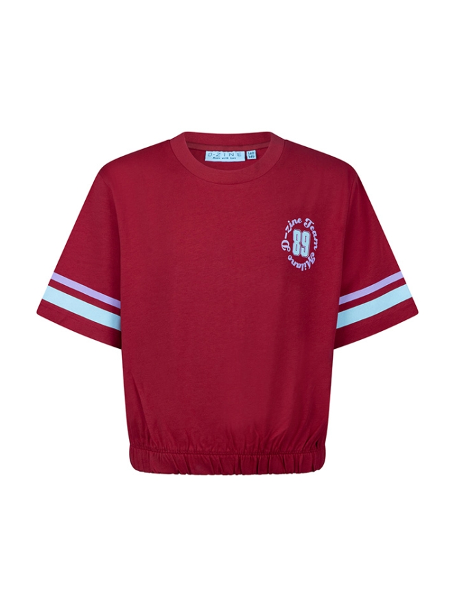 Dit T-shirt van D-Zine valt aan de bovenkant wat boxy en heeft een elastiek in de taille waardoor hij onder aansluit in de middel en iets cropped wordt. Een baseball shirt geeft je een trendy maar ook sporty look! Laat zich erg goed combineren op een mooie spijkerbroek, lang of kort.