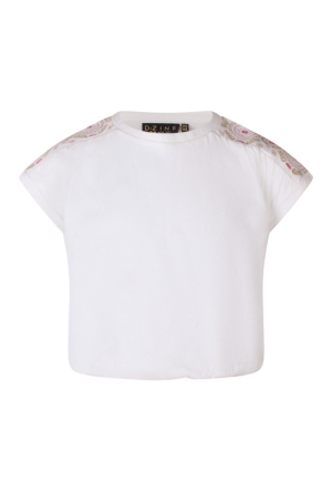 Dit meisjes T-shirt is gemaakt van zachte crinkle rib-stof en heeft aangeknipte mouwen voor een speelse touch. Perfect te combineren met een jeans of rok voor een vrolijke en comfortabele look.