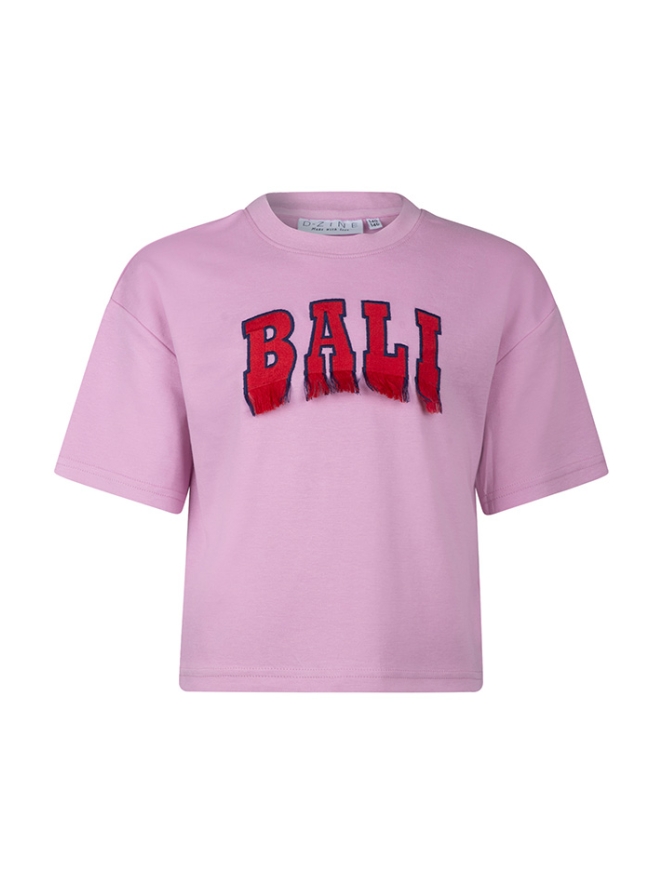 Trendy T-shirt in een boxy fit. Boxy is in zijn geheel wat wijder, dus hou je ervan dat het allemaal wat losser zit dan is dit hét T-shirt voor jou! Met Bali borduring met onder de letters een afgewerkte rafelrand voor een speelse look!