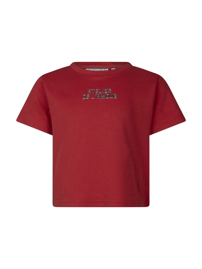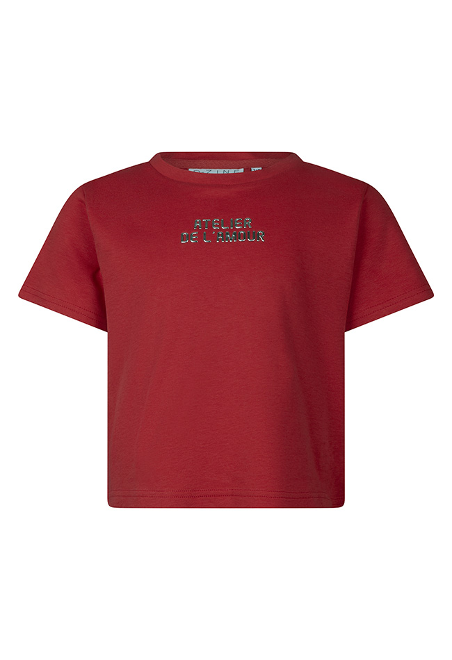Dit meisjes T-shirt heeft een korte pasvorm en een 3D shiny tekstprint met de woorden ?Atelier de l?amour?, voor een speelse en trendy touch. Combineer het met een denim short voor een stoere look of met een rokje voor een meer girly outfit.