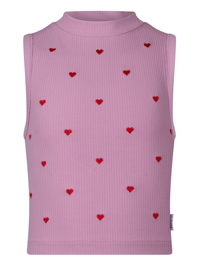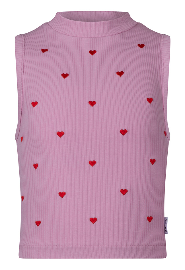 Op de voorkant zijn lieve hartjes verwerkt die het singlet een speelse en vrolijke uitstraling geven. Perfect om te combineren met een short, rokje of jeans voor een zomerse outfit.