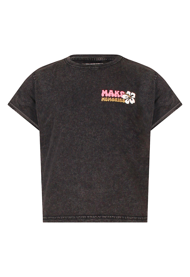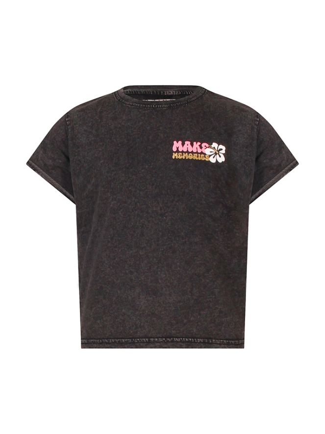 Dit leuke T-shirt heeft een acid wassing met een mooie print 'Making memories' en 'Ocean Breeze!' Let op, dit shirt heeft een speciale wassing, daardoor kunnen de kleuren verschillen. Ook kan de kleur veranderen tijdens het dragen. Wees voorzichtig met lichte kleuren.