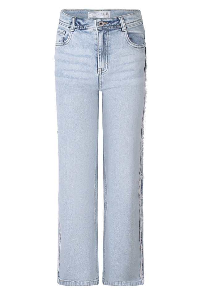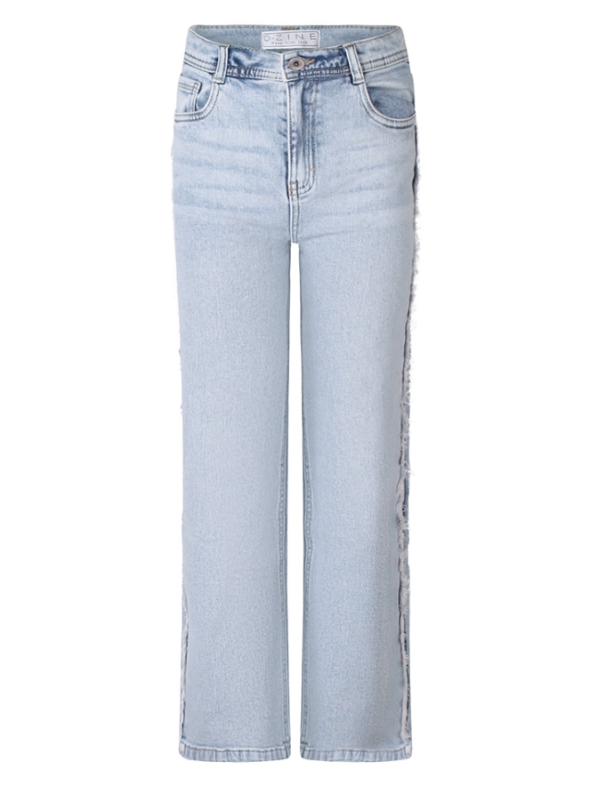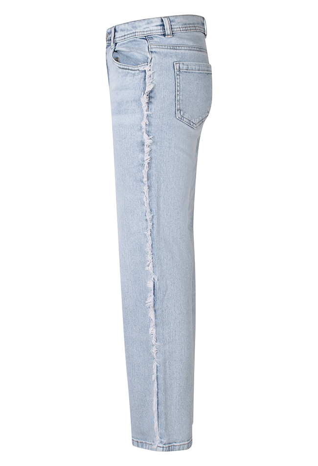 Deze meisjes jeans heeft een 5-pocket design, een straight leg pasvorm en een gerafelde detail bij de zijnaad voor een stoere touch. Een tijdloos denimitem dat makkelijk te combineren is voor een casual, trendy look.