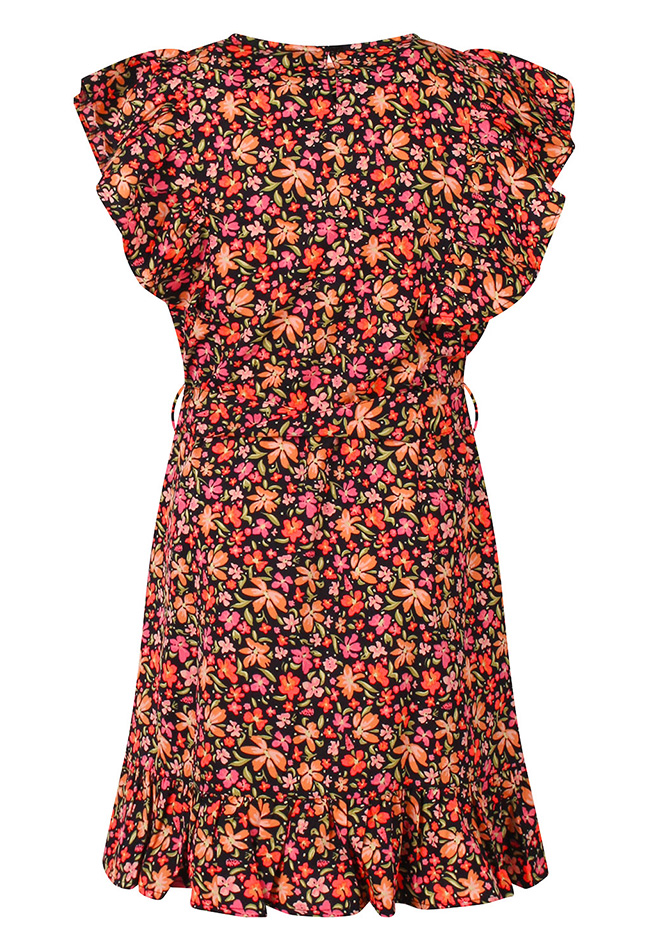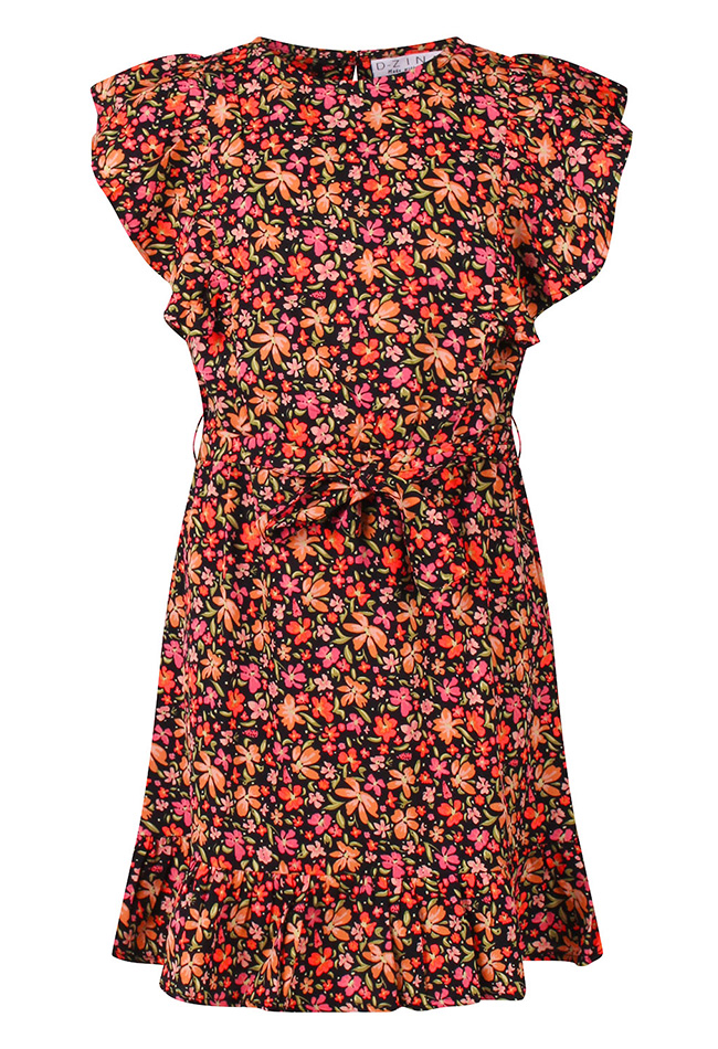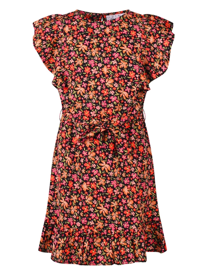 Bereid je voor op zonnige dagen met dit vrolijke multicolor jurkje van D-Zine. Het lichte, luchtige materiaal maakt het perfect voor de zomer. Het jurkje is voorzien van een ceintuur die de taille flatteert en ruches die elegant over de schouder vallen.