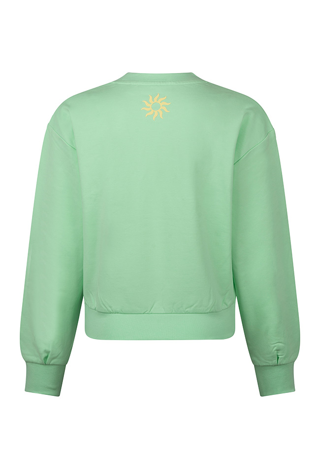 Vrolijke sweater, Soleil club D-Zine. Hij is er in 4 mooie zomerse kleurtjes. Mix en match met je garderobe. Kan ook aan als het wat frisser is natuurlijk! Sweater weather vibes!