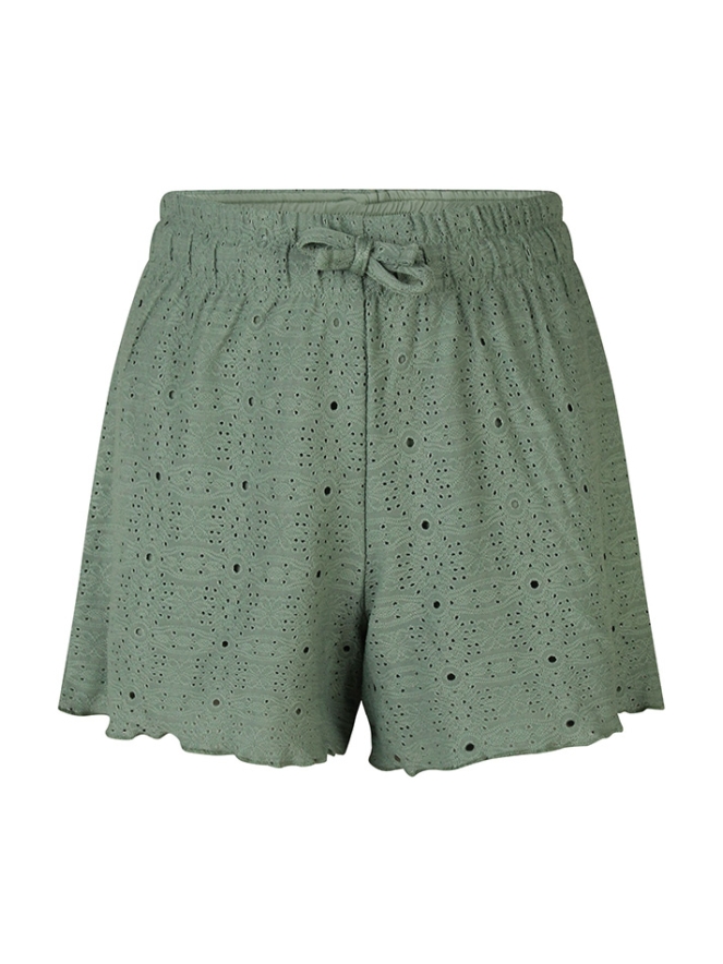 Comfortabele meisjes korte broek met een fijne pasvorm. De taille is voorzien van elastiek en een koord, waardoor de broek goed aansluit en eenvoudig te verstellen is. Dankzij de voering zit de short extra prettig en is deze niet doorschijnend. Ideaal voor warme dagen en volop bewegingsvrijheid. Leuk te combineren met een T-shirt of top voor een zomerse, casual look.