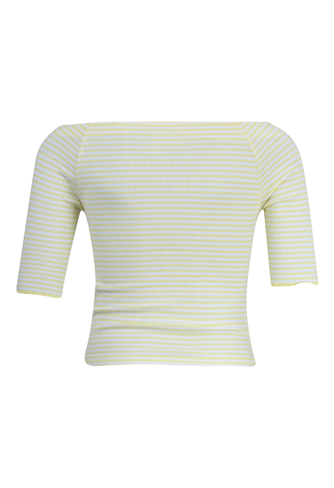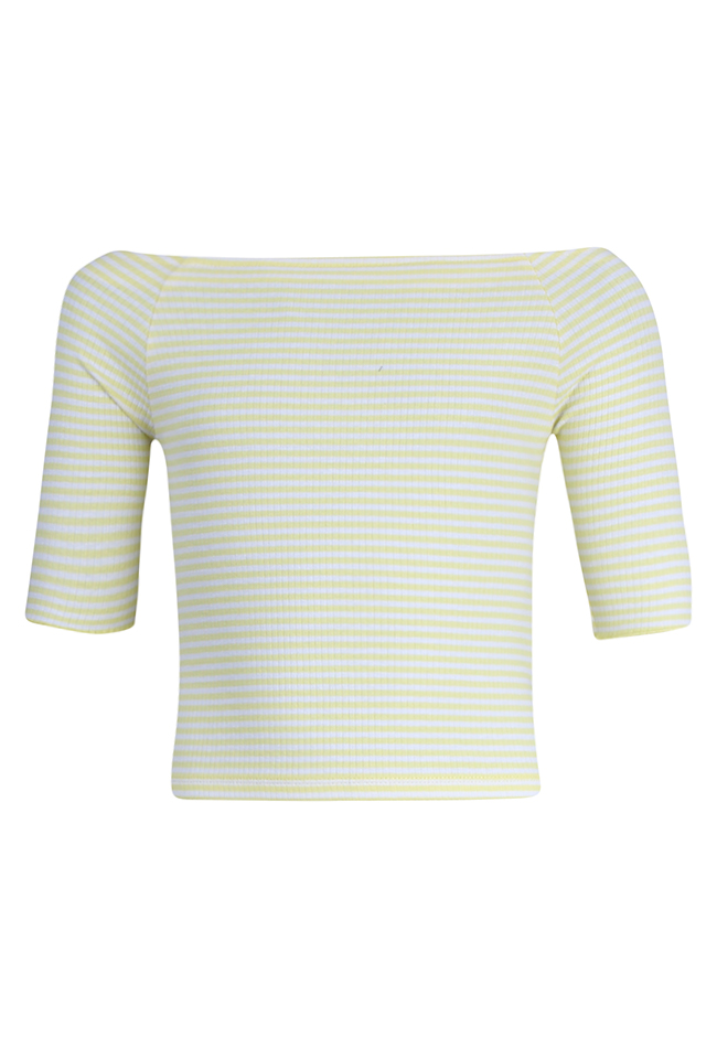 Gestreept off the shoulder t-shirt van D-zine. Materiaal: 95% katoen, 5% lycra
