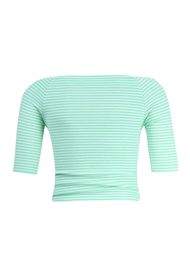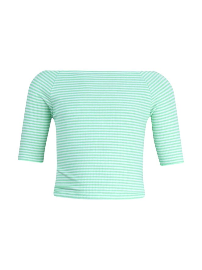 Gestreept off the shoulder t-shirt van D-zine. Materiaal: 95% katoen, 5% lycra