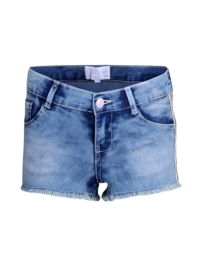 Denim short van D-zine. De shorts zijn van comfortabele denim en er zit veel stretch in. Aan de zijkanten zit een gestreept stukje stof en de pijpen zijn gerafeld afgewerkt. Materiaal: 73% katoen, 25% polyester, 2% elasthan