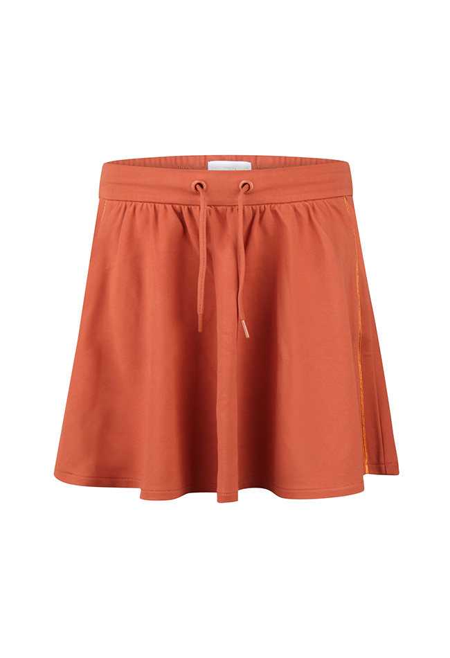 Rokje van D-zine. De rok heeft een skater model en is van zachte rekbare stof. De rok heeft een elastieken taille met een touwtje. Langs de zijkanten loopt glitter piping. Materiaal: 63% viscose, 32% polyamide, 5% elasthan. wassen op 30 graden, niet bleken, niet in de droger, kan gestreken worden.