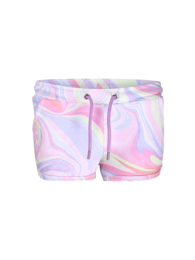 Jogging shorts van D-zine. De shorts hebben een gekleurde swirl print. Materiaal: 65% polyester, 35% katoen. 30 graden wassen, niet bleken, niet in de droger, kan gestreken worden. Matching hoodie: z60067, trui: z60149.