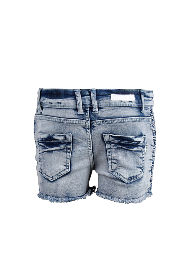 Shorts van D-zine. De shorts hebben een ruche zijkant en de pijpen zijn geraffeld. Materiaal: 99% katoen, 1% elasthan. Wassen op 30 graden, niet bleken, niet in de droger, kan gestreken worden.