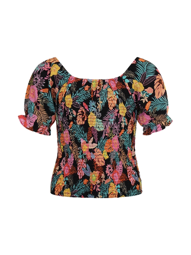 Gesmokte top met pofmouwen.
