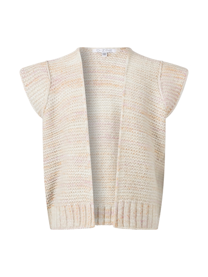 Dit giletje heeft een kapmouwtje en door de stof zit een klein glimmertje verweven.