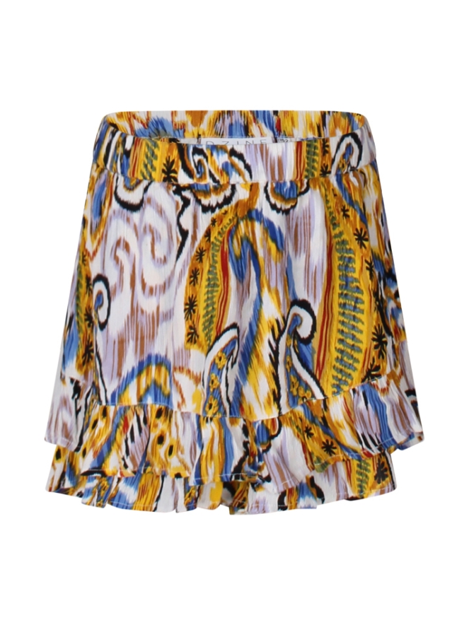 Wat een leukerd! Deze short heeft de looks van een rokje maar is een short. De Ikat print is super vrolijk en helemaal zomers en van de trends van dit moment! Wacht niet te lang want op is op!