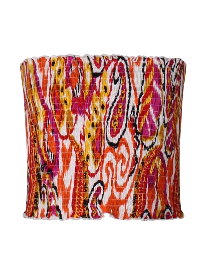 Deze nauwsluitende top bestaat uit een brede smockband. Cropped fit en zonder schouderbandjes. Leuk te combineren met het bijpassende rokje! Ter indicatie, de hoogte van de top met maat 128/134 is 18 cm.