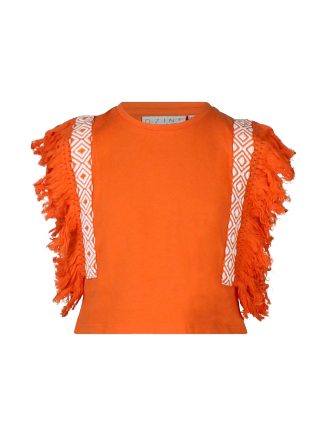 Wat een leukerd! En met de oranje top zit je gelijk helemaal goed voor het EK 2024 Kampioenschap Voetbal. Als je fan bent tenminste! De top heeft een cropped fit en lekker veel franje op de schouder. Helemaal on-trend. We hebben hem ook voor je in het zwart en off white.