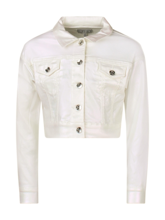 Bling bling! Dit gave spijkerjasje heeft een hele mooie metalic coating in het parelmoer. Het jack heeft veel stretch en draagt daardoor dus erg comfortabel. Hou je van co-ord en ben je meer van mix & match? Voor de co-ord setjes lover hebben we een bijpassende wide leg broek onder art.nr. Z90106