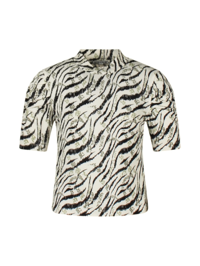 Leuk top met korte trendy ballonmouw en een turtleneck. Combineer hem op een effen broekje of ga voor de volledige look met bijpassende broek art.nr. Z90134