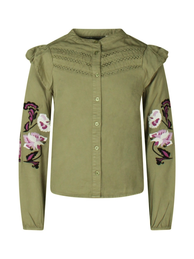 Prachtige blouse van 100% viscose met mooi bloemenborduursel op de mouwen. Deze blouse gaat geknoopt dicht. Wist je dat dezelfde blouse er ook is in volwassen maten? Deze vind je onder art.nr. Z90217